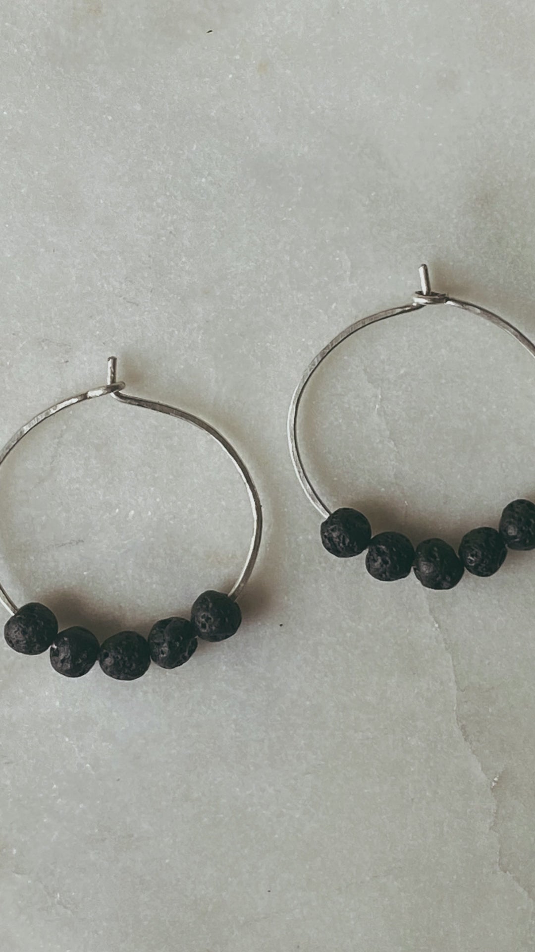 Simple, minimal earrings made with natural lava stone on hammered arches...Quick view- Regular price